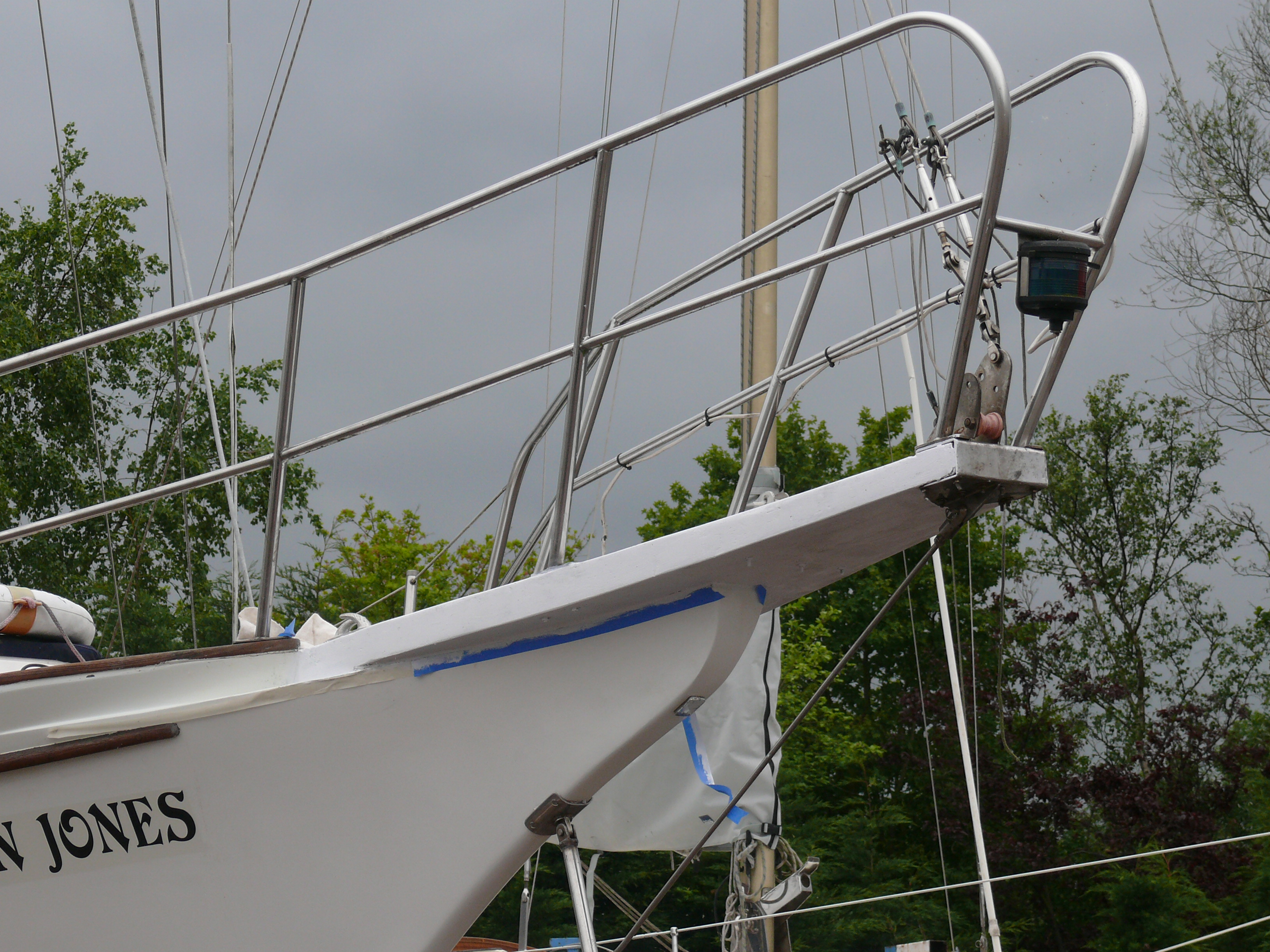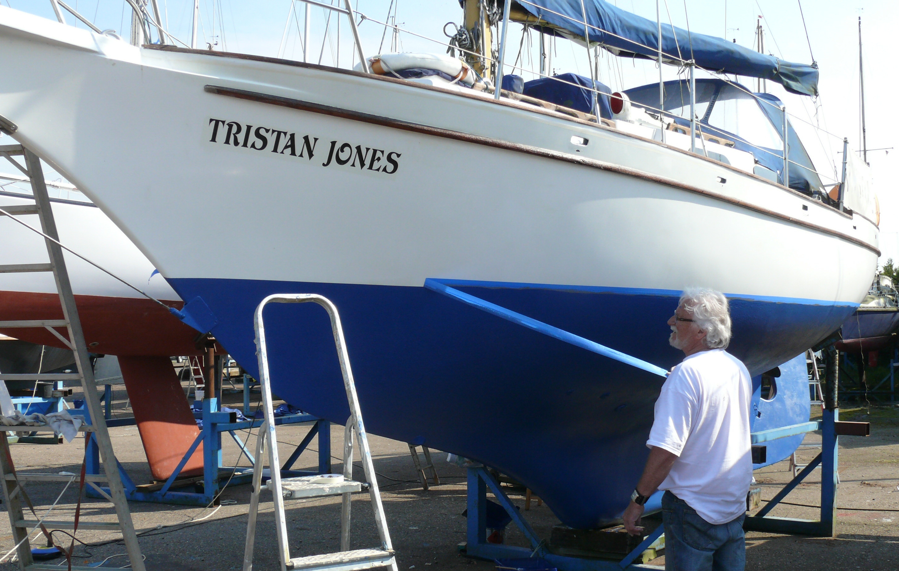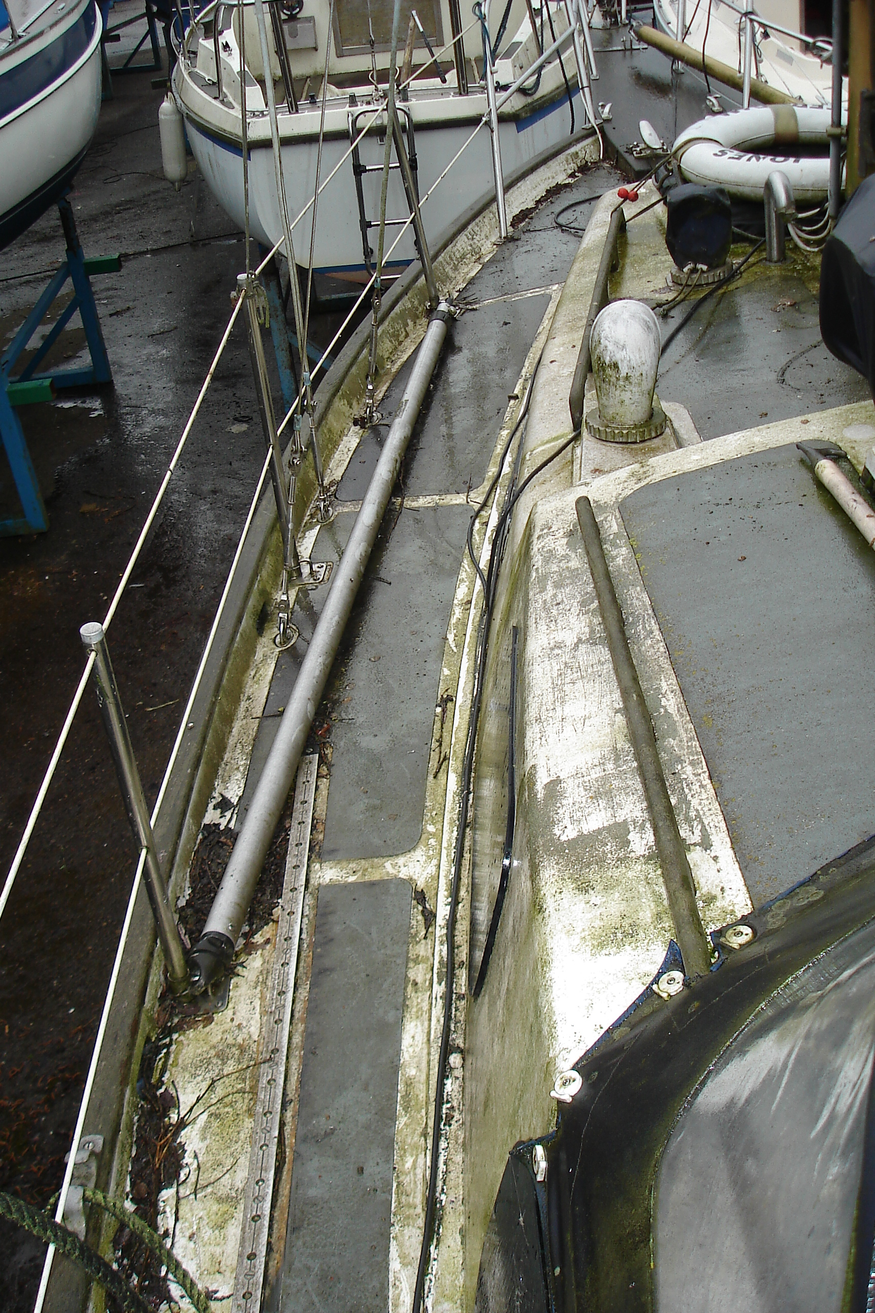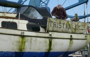 The pictures tell the story of replacing and restoring the bowsprit, deck timbers , doors and solar panel , clean up and antifouling and finally the return of the old dame to her element!