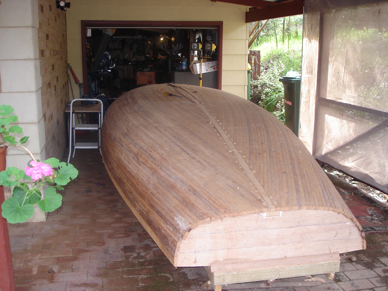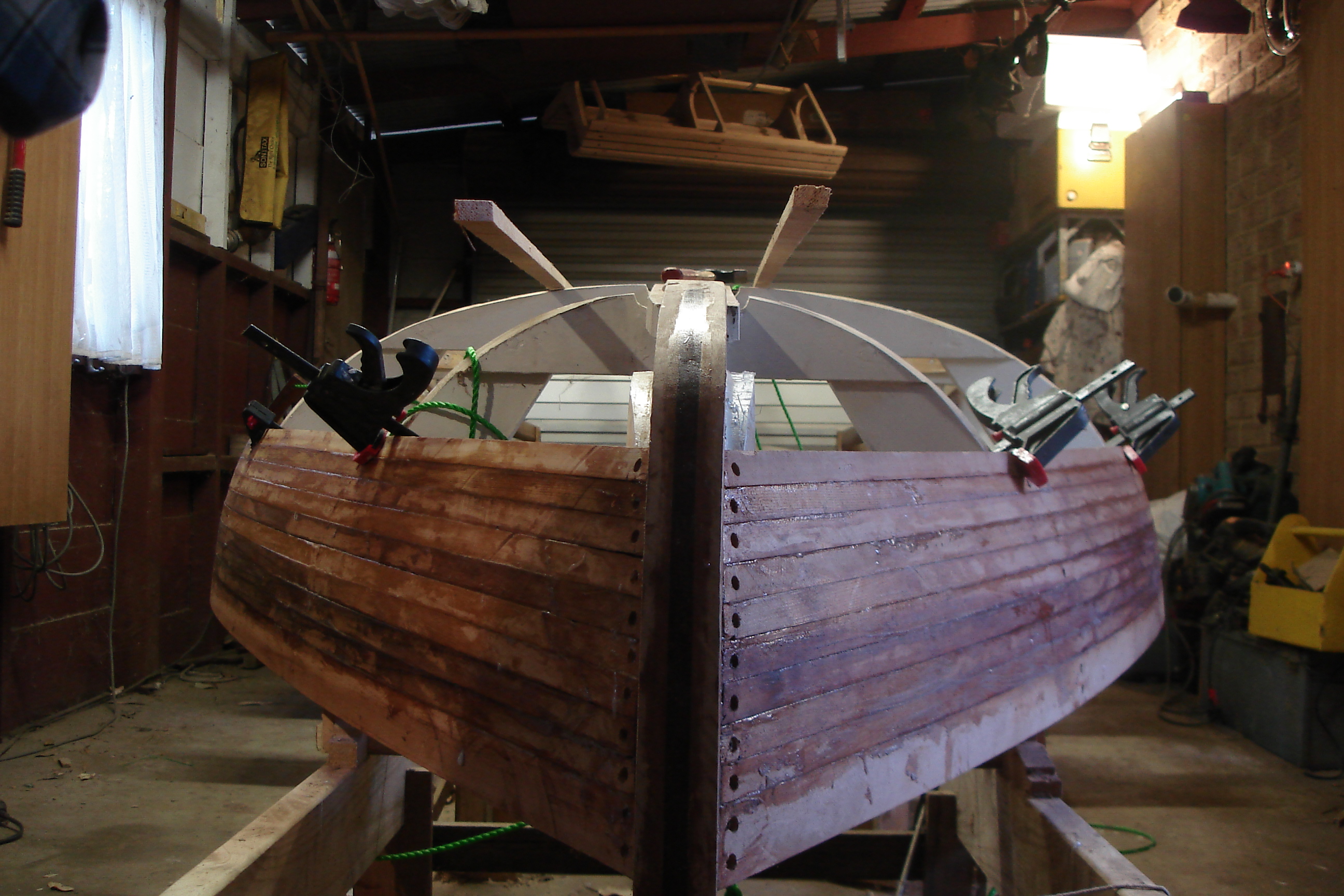 Next: prepare the cradle for when the boat is turned and I can get started on the deck,etc.