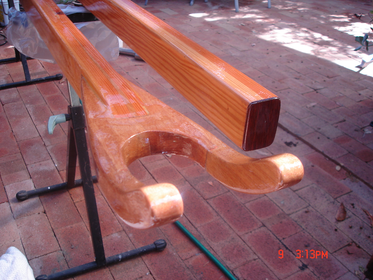 In between the varnishing layers of the hull, the boom, mast and gaff also received there final Epoxy layer. The mast cap was fitted as well!