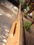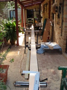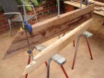 The gaff and the boom are made out of two lengths of Oregon glued together. The sail groove is routed in before gluing.